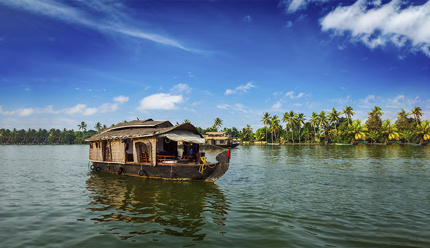 After breakfast, proceed to Alleppey, famous for its serene backwaters and houseboats. On arrival, check in to your private houseboat and cruise through the backwaters, witnessing village life, coconut lagoons, and paddy fields. Overnight stay at the houseboat.